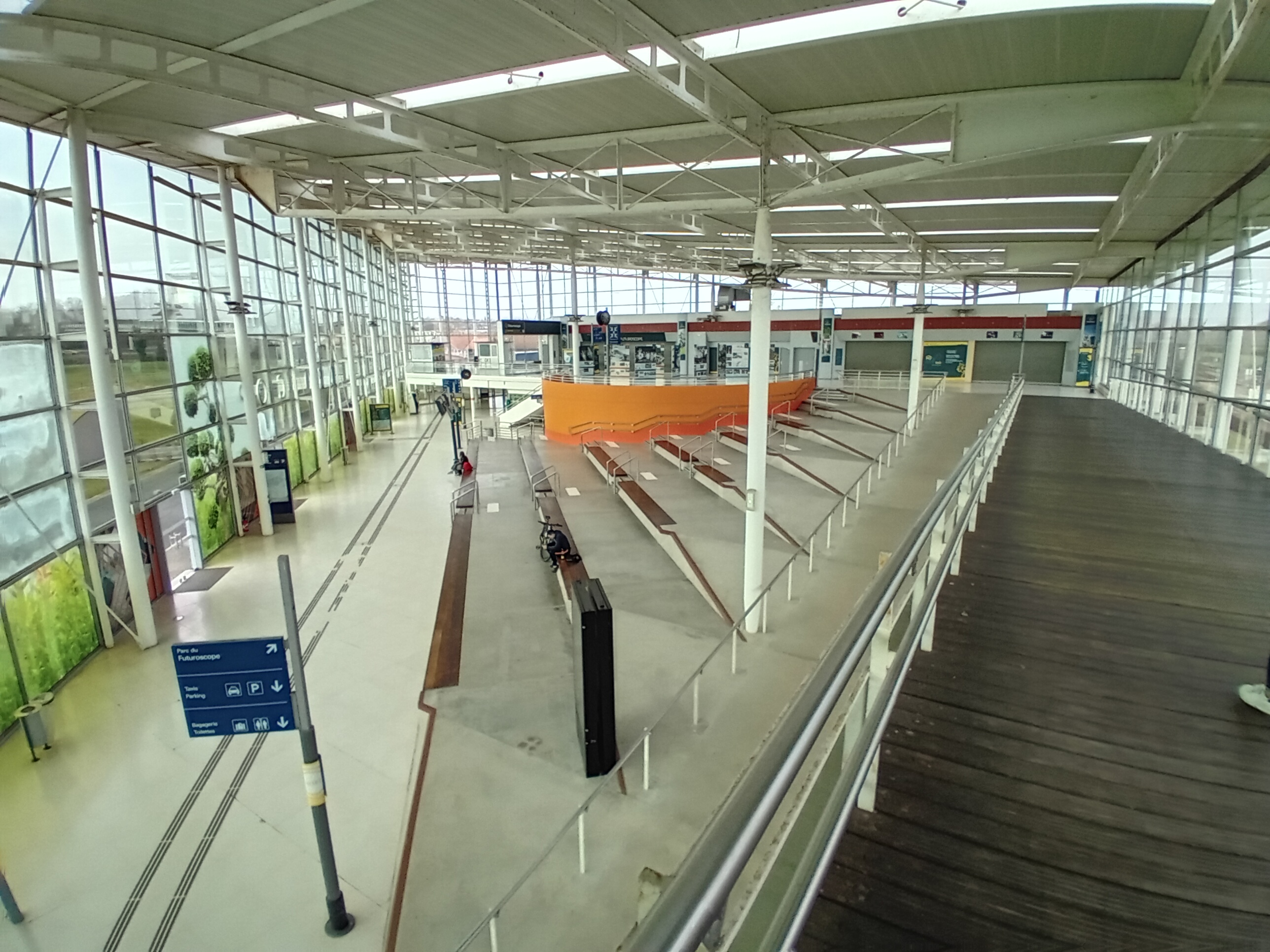 Très grande gare très froid magasin Futuroscope a l'intérieur avec guichet pour ticket pour aller au Futuroscope. Souvent ferme. Il a personne pour vous renseigner dommage. Et au 1 er étage il a une exposition sur le Futuroscope.